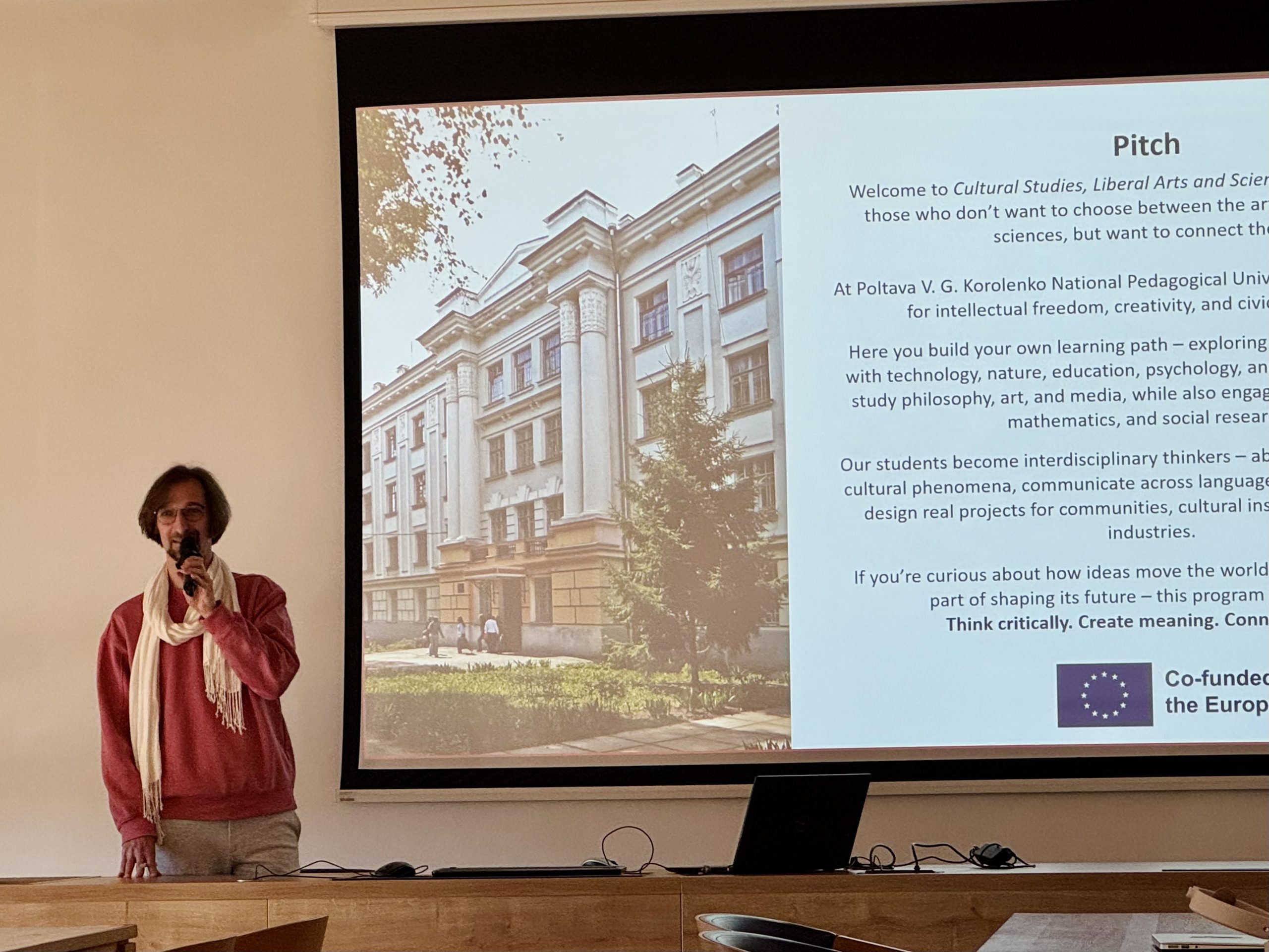кожного закладу вищої освіти до вересня 2026 року. Відбулися раунди індивідуальних консультацій українських університетів із рецензентами проектів від ЄС. Команда Полтавського педагогічного університету мала дискусії з науковцями Університетського коледжу Маастріхт та Університету Адама Міцкевича в Познані. Згодом мала місце сорокахвилинна презентація освітньої програми «Культурологія. Вільні мистецтва та науки» Полтавського національного педагогічного університету, яку провів професор Олександр Лукʼяненко, відповідаючи на питання колег з України та ЄС. Також тривали дискусії та презентації програм українських університетів та обговорення еволюції проєктів з весни до осені 2025 року.