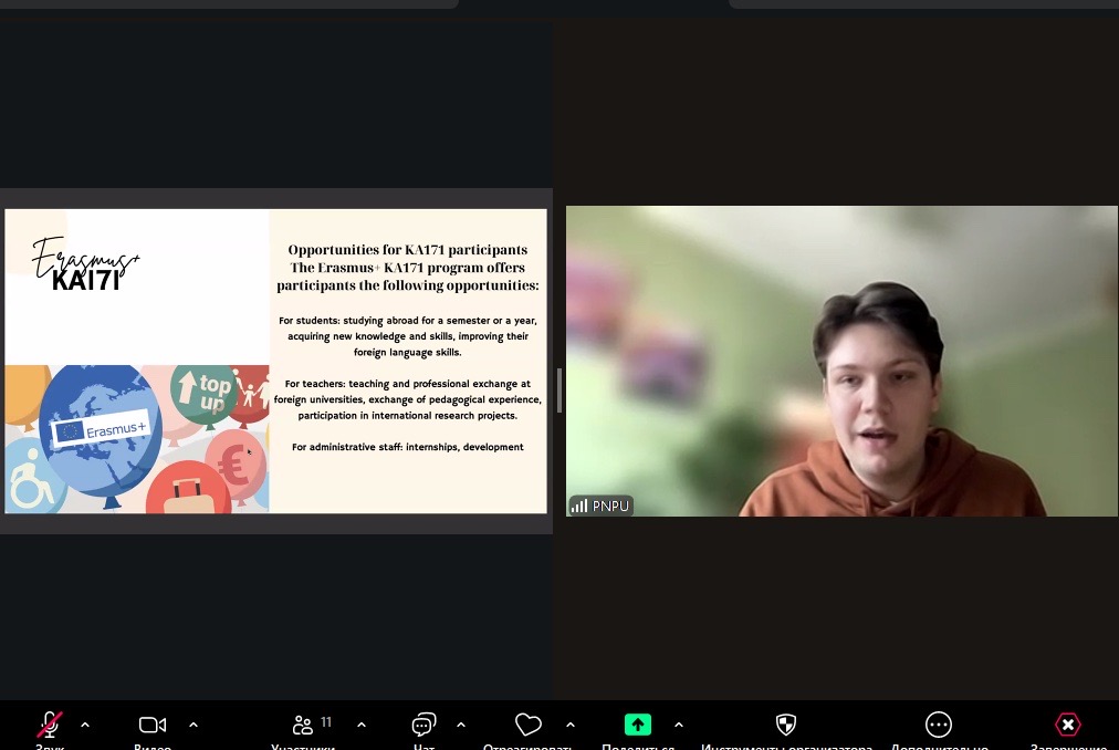 Під час зустрічі представник відділу інноваційної діяльності та міжнародних зв’язків презентував перспективи участі студентів та викладачів у програмі Erasmus+ KA171. Учасники отримали детальну інформацію про партнерські університети, особливості участі, критерії відбору та переваги міжнародної академічної мобільності.