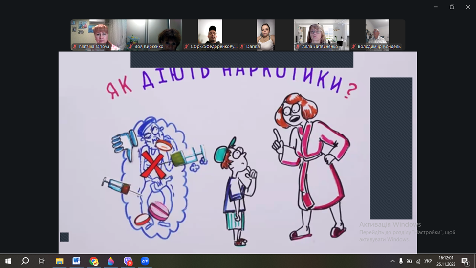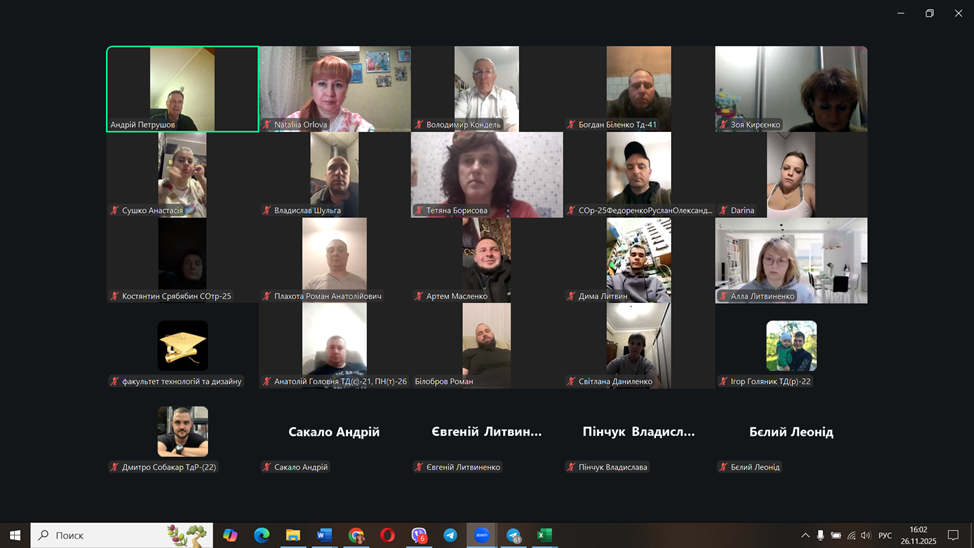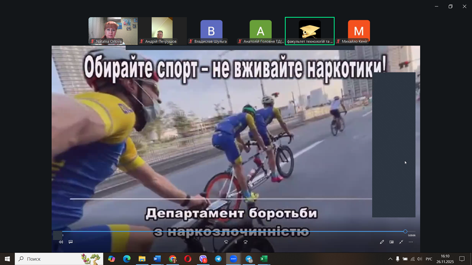 26 листопада 2025 року здобувачі освіти і куратори академічних груп факультету технологій та дизайну прослухали відкриту лекцію з мультимедійним супроводом в онлайн-форматі «Профілактика вживання наркотичних засобів і психотропних речовин та популяризація здорового способу життя серед дітей підліткового і юнацького віку».