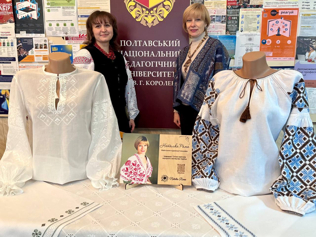 «Майстри народного декоративно-ужиткового мистецтва для НУШ» — презентували здобувачі другого (магістерського) рівня факультету технологій та дизайну ПНПУ Наталія Рома та Олена Грінченко.