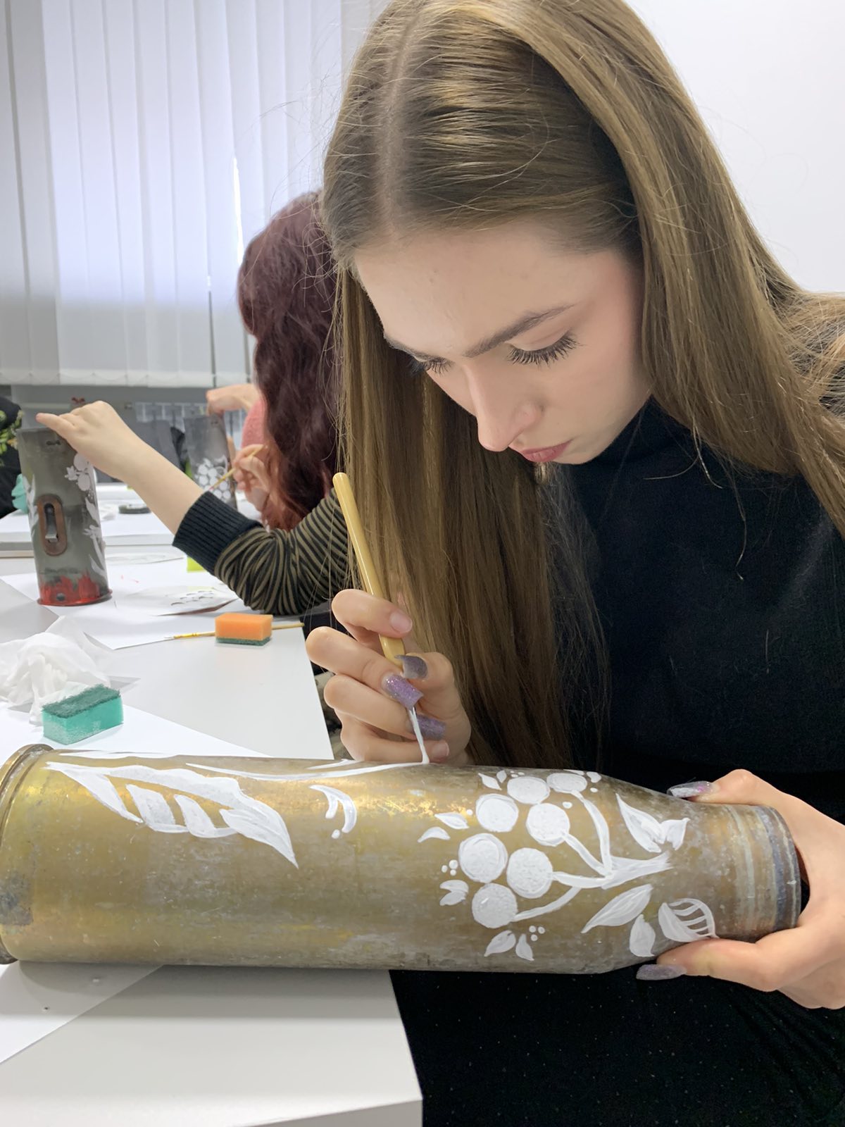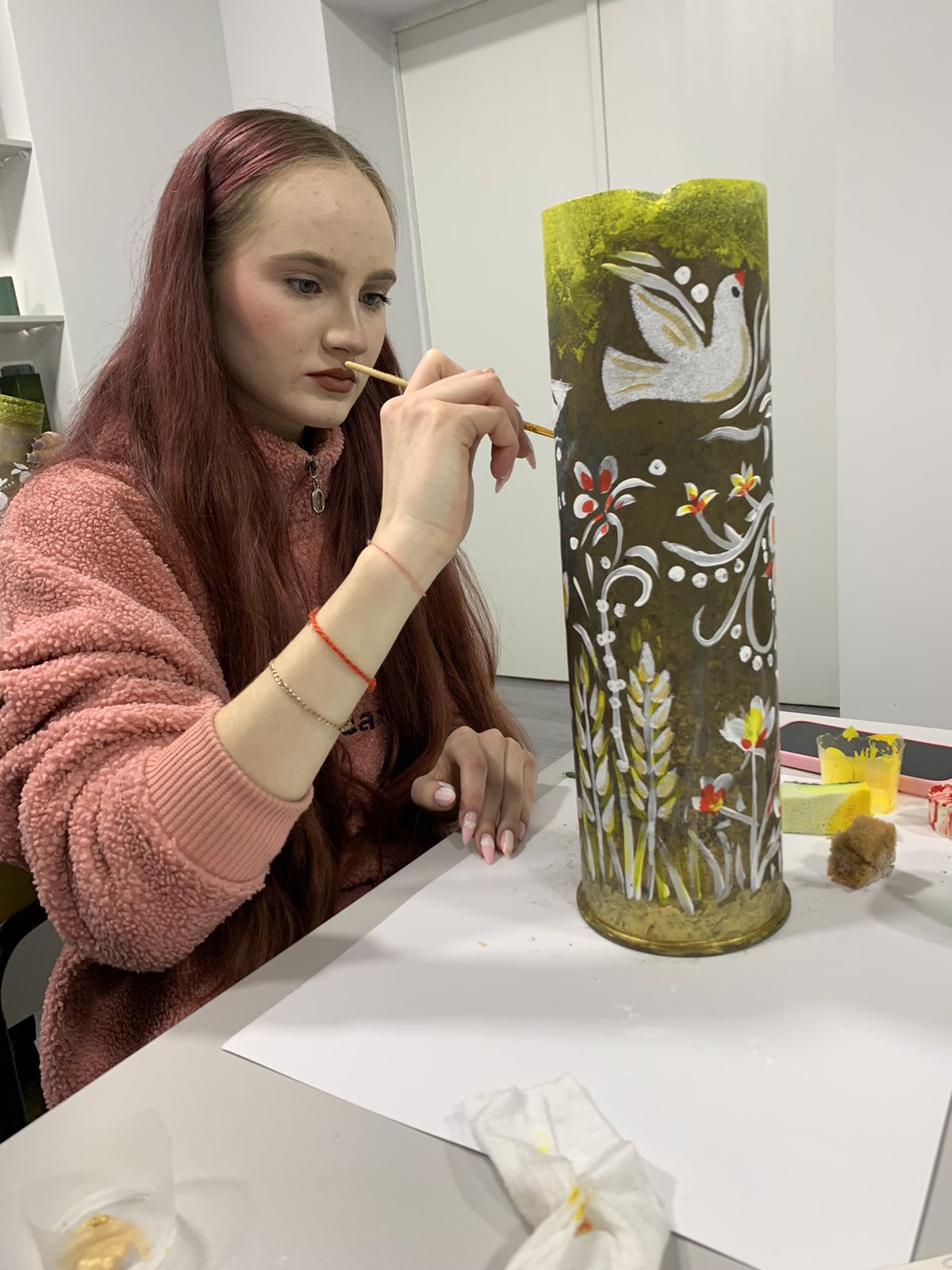 Під керівництвом майстра народної творчості Євгена Пілюгіна студенти факультету здійснили розпис гільз від гарматних снарядів, наданих воїнами Збройні Сили України. Символічні артефакти війни набули нового змісту завдяки традиційному полтавському розпису – яскравому, самобутньому та глибоко вкоріненому в культурну спадщину нашого краю.