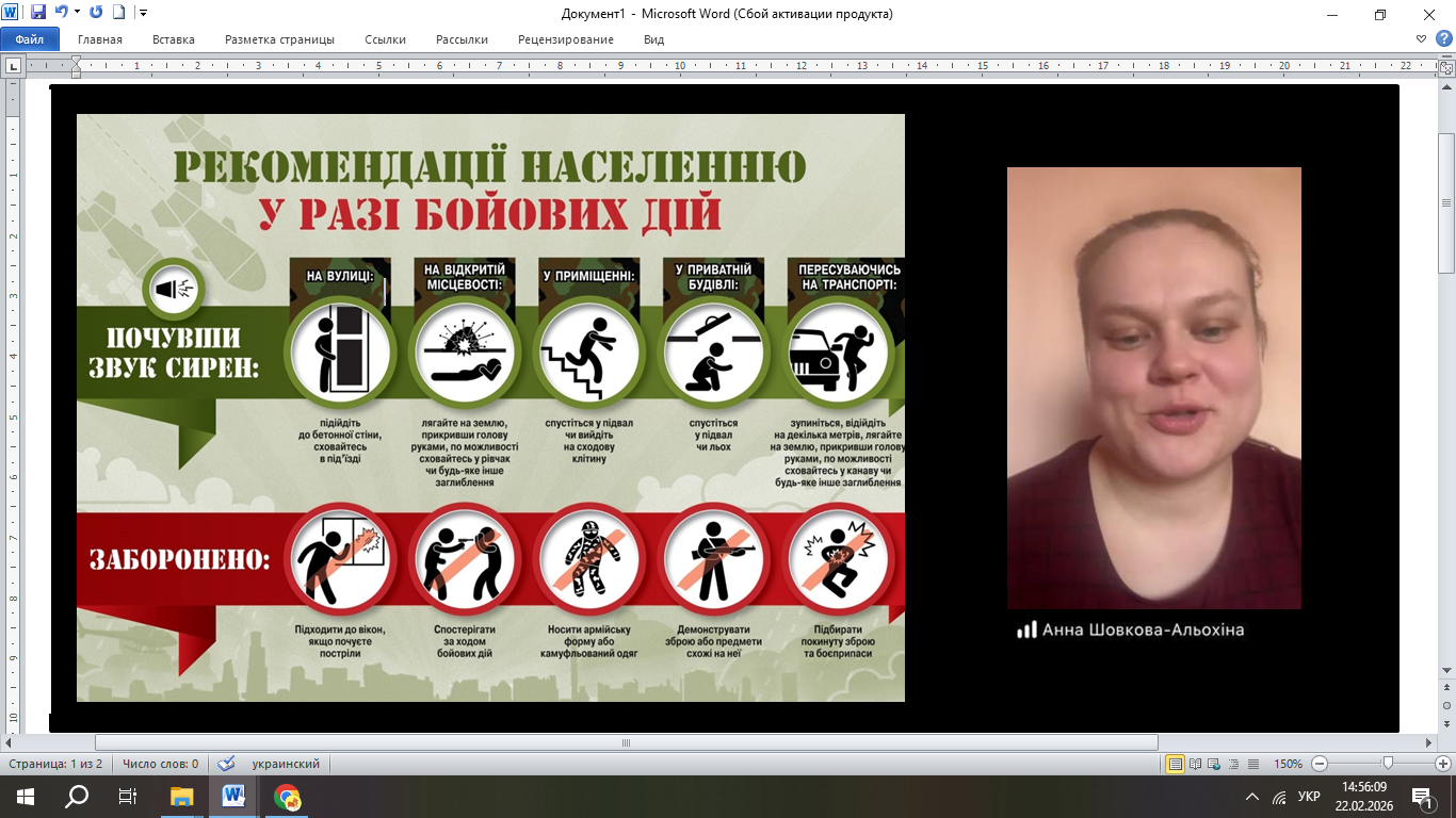 Анна Шовкова-Альохіна, куратор академічних груп заочної форми навчання, окрему увагу приділила алгоритму дій при сигналі «Повітряна тривога», нагадала порядок оперативного прямування до укриттів, правила перебування в захисних спорудах та необхідність дотримання інструкцій відповідальних осіб.