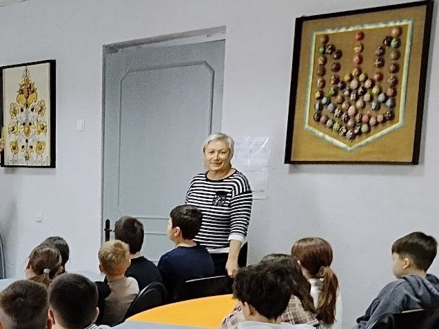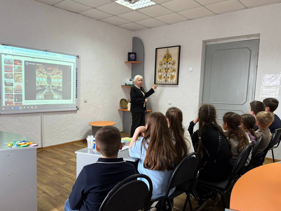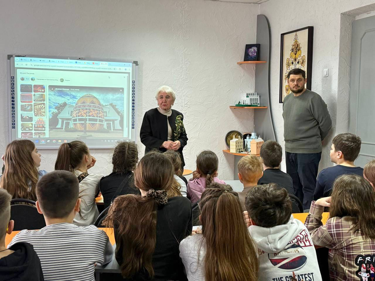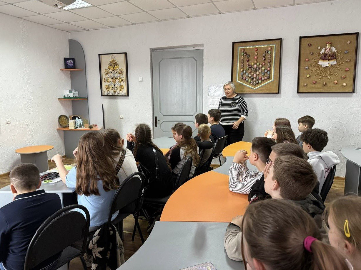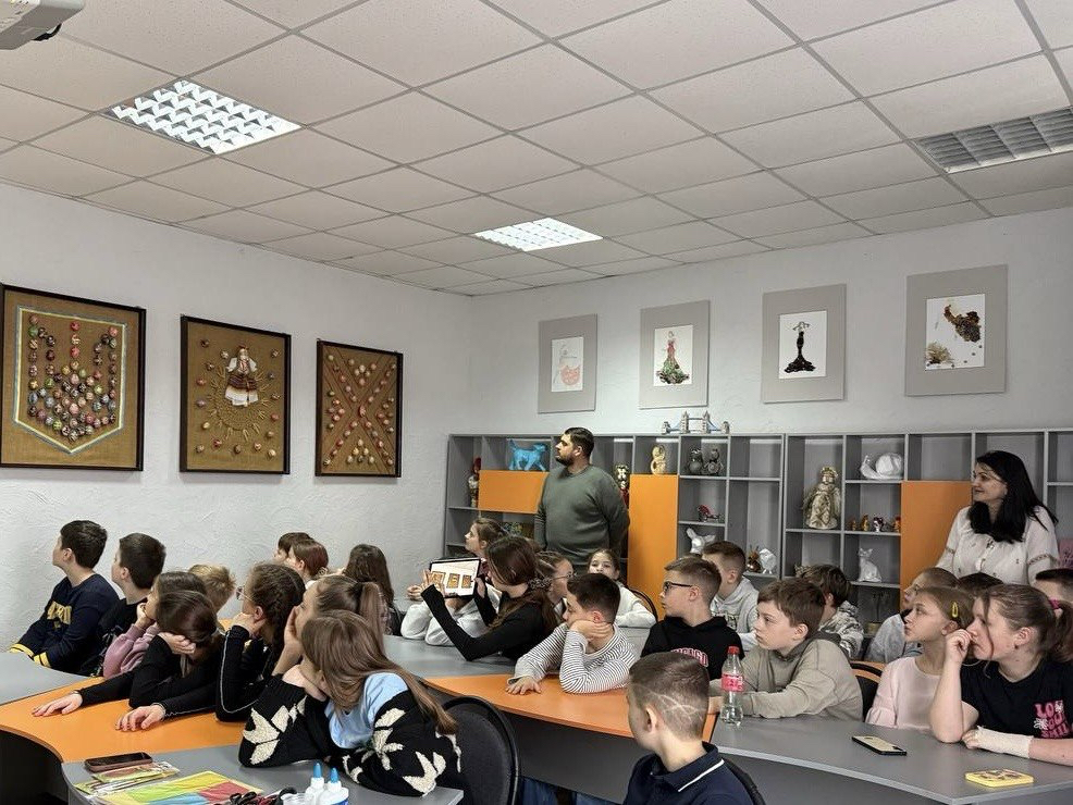 Доцентка Лариса Гриценко представила науково-творчий доробок студентської молоді факультету технологій та дизайну – роботи, пов’язані зі збереженням культурної спадщини, які експонуються в аудиторному фонді. Це дало учням можливість побачити, як традиційна тематика знаходить продовження у сучасних наукових пошуках і творчих проєктах студентів.